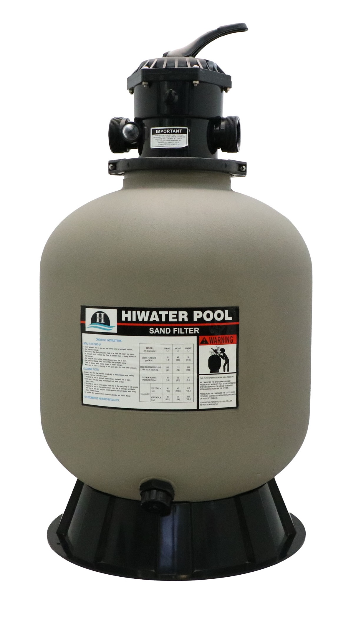 فمیلی فیلتر شنی پلی اتیلن تقویت شده، مخصوص سیستم تصفیه استخر و جکوزی، مشابه محصولات داخلی و خارجی با شیر چند راهه در بالا LOD200