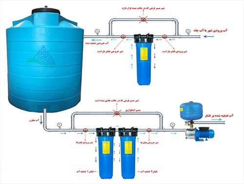 فمیلی فیلتر آب ورودی ساختمان، آپارتمان، جانبو (محفظه) بزرگ 20 اینچی، با فیلترهای پلیمری LOD300